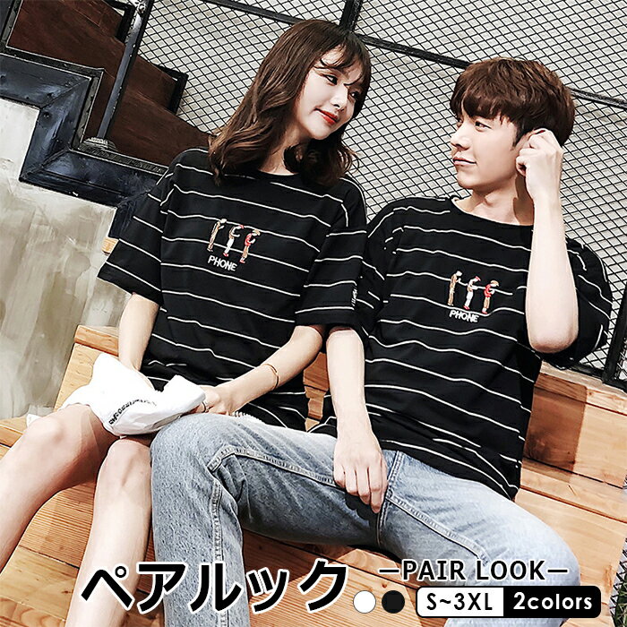 半袖Tシャツ ボーダー柄 tシャツ カップルペア 男女兼用 メンズ 新作 刺繍 トップス クルーネック Tシャツ ボーダー tシャツ メンズ トップス 夏服 コットン 綿 お揃い おしゃれ Tシャツ