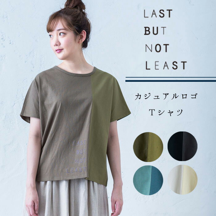 【カジュアルロゴTシャツ】レディース/トップス/半袖/大人の/カジュアル/アルファベット/刺繍/切替え/ゆったり/イマゴ/カーキ/ブルー/ホワイト
