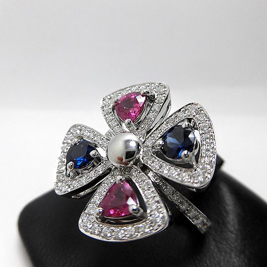 K18赤珊瑚カラフルサファイヤ取り巻きトップ