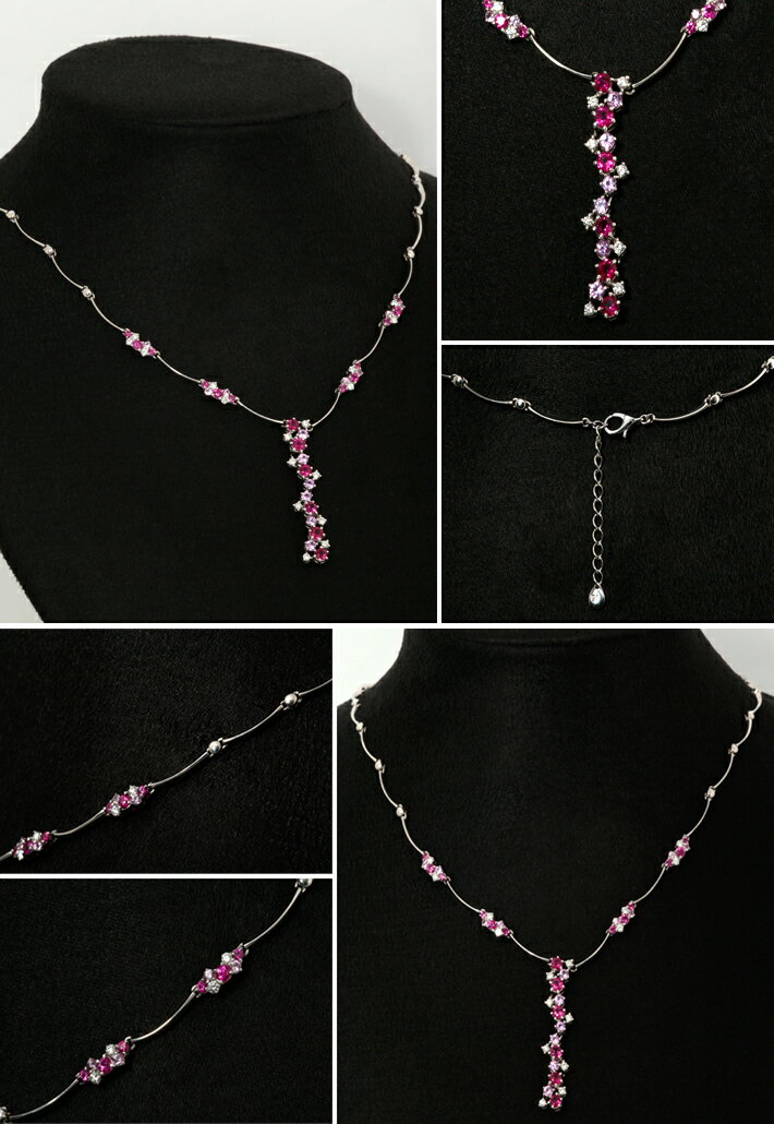 小花の咲いたような可憐さ ルビー&ピンクサファイア&ダイヤモンドの華奢なネックレス ルビーやサファイア、ダイヤモンドをふんだんに使用した、 上品な大人の可愛さを演出してくれる繊細な細工のネックレスです。