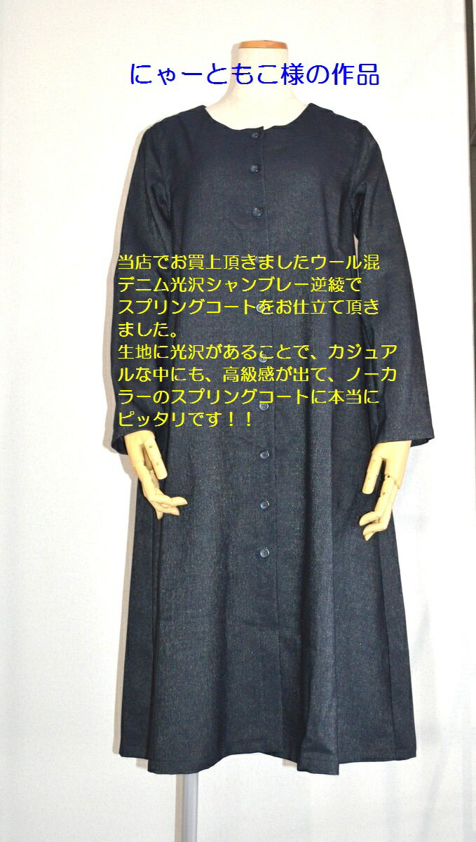 タテ糸の光沢糸が見え隠れする、ウール混デニム調ストレッチ生地です。